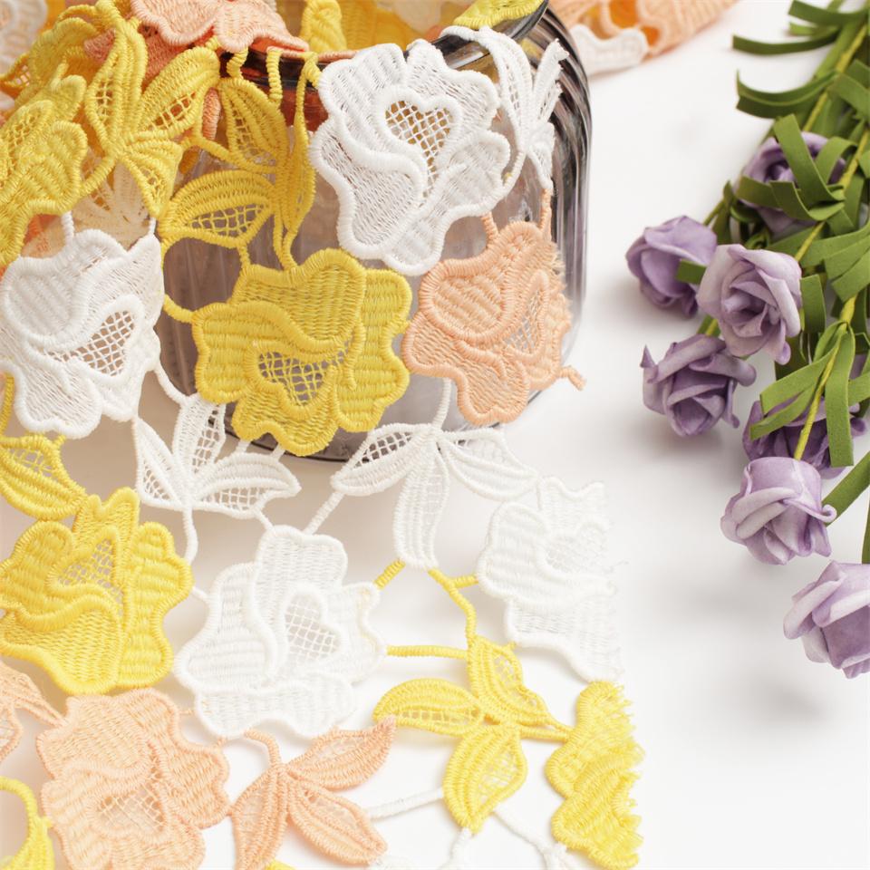 多色牛奶丝水溶绣绣花布 透气春夏季连衣裙面料
